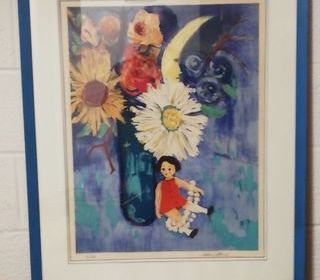 Vends superbe lithographie intitulée "La poupée" de Abel. Artiste connu. Lithographie numérotée : 3/99. Encadrée sous verre. 77cm x 54cm sans cadre: prix: 18 euros 81cm x 66c