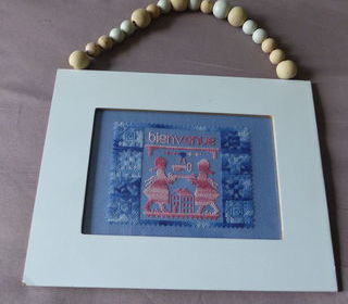 cadre blanc " POINT DE CROIX thème : " bienvenue " dimensions : 24.5 x 19.5 cm 15€ + frais de port