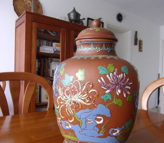 VASE CHINOIS EN TERRE CUITE BON ETAT HAUTEUR 36 CM DIAMETRE 24 CM Me contacter aux heures des reps A RETIRER SUR PLACE