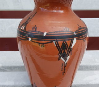 Vase en terre cuite marron avec motifs noirs Hauteur : 20 cm Diamètre en haut : 10 cm Très bon état Prix : 5 euros A retirer sur Triel sur Seine ou Poissy gare