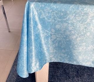 Nappe bleu 3 Suisses effets contrastés Dimension 244 x 147 Ne nécessite pas de repassage 100 % polyester Fabriquée en France Excellent état - Aucune imperfection