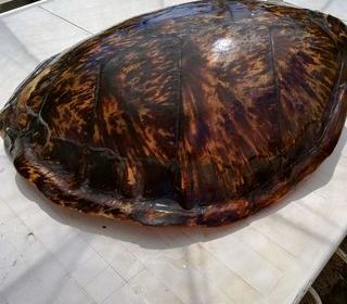 trouvée dans un grenier jolie carapace de tortue sans doute africaine 68x63cms en très bon état de conservation juste l' éclat d une écaille vers la queue - datant environ des ann