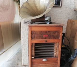 Rare -je vends un ancien gramophone meuble à pavillon- aiguille à changer avec quelques disques 78 tours utilisé à l'époque ans un café prix à débattre