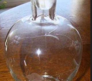 Carafe à vin soufflée bouche, décoration gravée fleur, hauteur : 22 cm, diamètre : 11,5 cm Contenance 1 litre