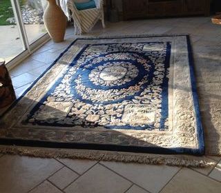 Magnifique tapis chinois bleu du 20 ème siècle, entièrement noué à la main, dimensions : 280 X 184 (sans les franges) Epaisseur 2 cm 100 % Laine TRES BON ETAT Pas d'envoi à