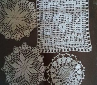 Napperons faits main 1 rectangle blanc 26 x 20 2 ronds écru blanc Ø 20 1 rond écru Ø15