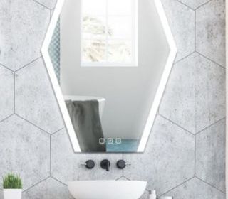 Miroir lumineux LED argent Epaisseur 5mm Bords latéraux lumineux en acrylique de 20mm d'épaisseur Touch sensor 3 boutons avec variateur d'intensité et changement de températur