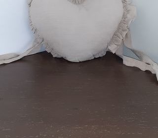 3 coussins coeur couleur beige avec attaches TBE 25 CM de larg 5€ l'un ou 10€ les 3