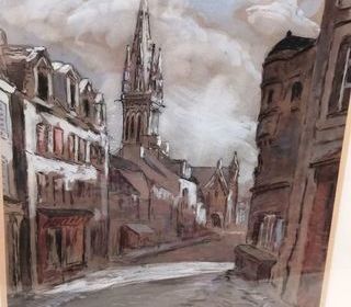 Cause déménagement Tableau Cadre bois massif vitré 56,8 x 67, 8 cms Aquarelle 1989 signée Jim Louscaunau Excellent état pour l aquarelle Le cadre vient de tomber : un a