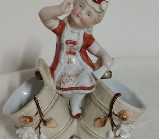 Décoration céramique personnage. Objet ancien en bon état. Hauteur 15 cm largeur 14 cm profondeur 6,5 cm