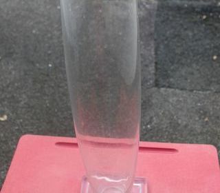 vase haut en verre très bon état dimensions: base: 16X 16 épaisseur base: 2 hauteur (hors base): 57,5 pas d'envoi; objet fragile