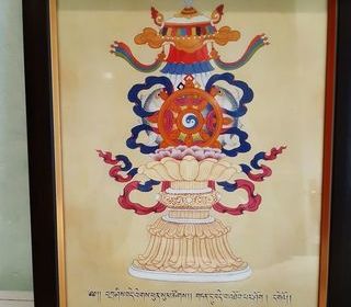 tableau Tibetain rapporté d'un voyage au Tibet dans un monastère. 32 x 25 a suspendre