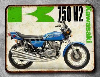plaque Metal Kawasaki Pour Collection ou déco rétro, gatage, Loft Bar et Café années 60 / (30 cm X 20 cm) tarif degressif suivant le nombre
