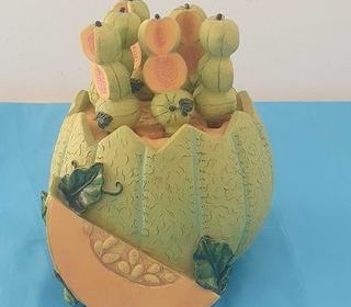 Magnifique abat-jour en céramique Faenza non certifié, complet avec son abat-jour, d'une hauteur de 84 cm et d'une circonférence maximal de 78 cm. Datant des années 1960, cette piè