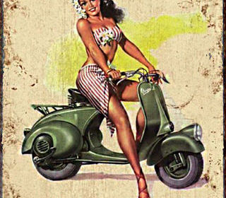 plaque Metal Moto Vespa Ti Amo pinup Pour Collection ou déco rétro, gatage, Loft Bar et Café années 60 / (30 cm X 20 cm) 600 plaques differentes en stock, lien sur demande tari