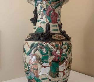 A VENDRE ANCIEN VASE CHINOIS - OBJET DE FAMILLE SUITE VIDE MAISON - VASE CRAQUELé EN PORCELAINE "NANKIN" SIGNé D'UN CACHET SCèNE DE PERSONNAGES GUERRIERS CHINE 19èME