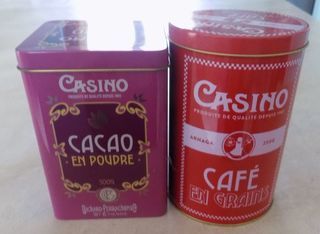 Lot de 2 boîtes métalliques publicitaires comprenant 1 carré 9.5*9.5*14.5 et 1 rond diamètre 10.5cm et hauteur 15cm