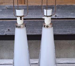 Paire de lampes en très bon état, signée à leur base, model RD 1566. Câblage d'époque. Fonctionnel. Support d'abat jour réglable en hauteur. Chaque lampe est marquée, gravée et
