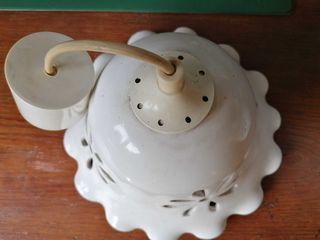 2 petites suspensions ceramique blanche modèle cloche dentelée 'style Petit Vallauris " hauteur 16cms diamètre 35cms