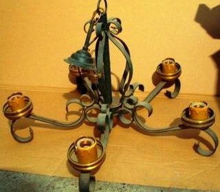 J'ai le plaisir de vous présenter ce magnifique lustre en fer forgé de 5 branches. Cet éclairage d'intérieur a beaucoup de caractère et apportera une touche de style rustique à vot