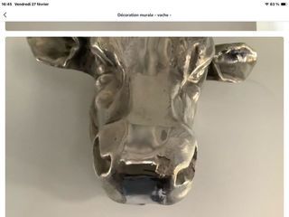 Décoration murale - superbe tête de vache - style contemporain - déco moderne - un effet waouh ! très bon état - disponible secteur Annecy - pas d'expédition -