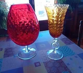 Ancien grand vase sur pied en verre couleur rouge, hauteur :34 cm parfait état, prix :9 € pas d'envoi, pas de paiement en ligne Vase sur pied en verre, hauteur :32 cm, parfait ét