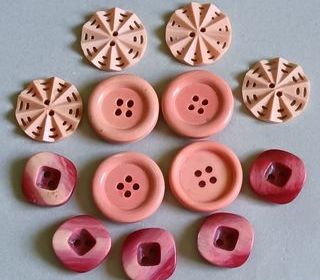 Collection "Variations de Roses" - LOT N°7 Magnifique ensemble de boutons vintage déclinés dans une palette de roses délicats. Ce lot se compose de trois séries distinctes, chacu