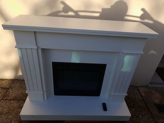 Vend fausse cheminée électrique bois très bon état. Couleur: Blanc Longueur: 1,22 Largeur : 0,47 Hauteur : 1,02 Radiateur : 230V-240V 50 HZ 2000W Télécommande