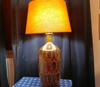 Ancien pied de lampe à pétrole en porcelaine peinte à la main, du XIX e, en bon état. PAS D'ENVOI , paiement en espèces avant début septembre 2026 , disponible dans plusieurs commu