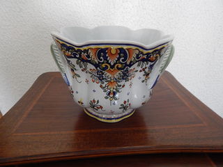Cache pot décor ROUEN décor fait main / signé hauteur15,5 cm / diamètre intérieur haut 20,5 cm/diamètre intérieur bas 13 cm très bon état