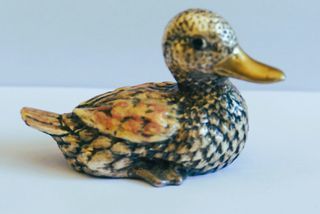 Canard en laiton émaillé. De dimensions 80/50mms pour un poids de 308grs, forte densité. Création artisanale.