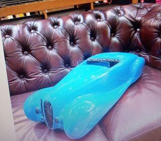 superbe delahaye prototype des 24 heures du mans objet publicitaire des magasins"DELAHAYE" longueur 80 cms en résine objet neuf dans son emballage d'origine RARE