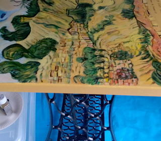 Sur table Singer plateau artistique interprétation de Van Gogh. Les toits de chaume 1880 Pièce unique.ideal.hall d'entrée.loft. Couleur chaude.