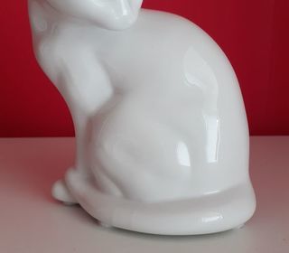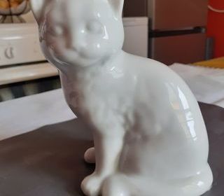 Chat blanc en porcelaine de LIMOGES, hauteur: 17cm, largeur: 13cm, profondeur: 8cm. Etat neuf. A prendre sur place.