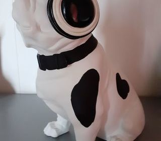 Statue bouledogue noir et blanc Maison du Monde. Hauteur: 33cm, longueur: 27cm . Etat neuf. A prendre sur place.