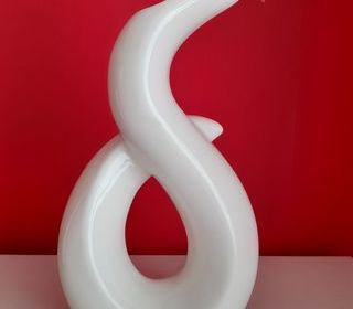 Grand vase blanc HEG Bielefeld, hauteur: 34cm, largeur: 20cm, profondeur: 8,5cm. TBE. A prendre sur place.