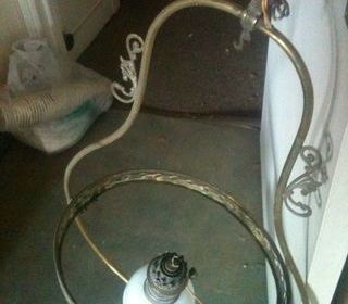 *** Suspension lampe ancienne cuivre ou laiton (un abat-jour un peu fêlé, j'ai cassé le 2è grrrr), diamètre environ 40 cm, fière allure quand-même. Pétrole (et électrique semble-t-
