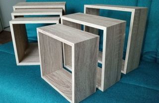 2 lots de 3 étagère cube mural Taille: L 30 cm X H. 30 cm X P. 12 cm L 27 cm X H. 27 cm X P. 12 cm L. 24 cm X H. 24 cm X P. 12 cm Bon État