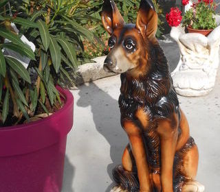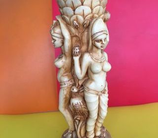 Cède une statuette en résine (imitation ivoire) représentant un éléphant d'une hauteur d'environ 20 centimètres pour une longueur d'environ 19 centimètres.