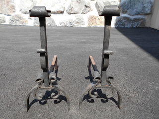 Vend une paire de chenets en acier : - hauteur : 42cm, - largeur : 19cm, - profondeur : 44,5cm, - poids : 3,2kg x 2 = 6,4kg. Prix à débattre.