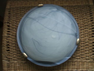 - Plafonnier rond en verre dépoli de couleur gris-bleu en excellent état.. Diamètre du socle 24 cm et boule verre 32 cm. 3 attaches.
