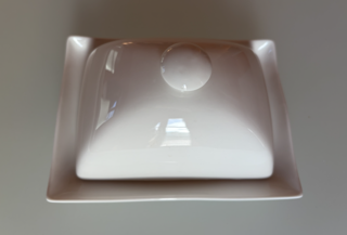 Beurrier blanc porcelaine de Bruno Evrard neuf belle porcelaine fine et blanche, très élégant Dimensions 16 x 12 x h 9 cm