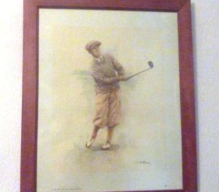 une reproduction encadrée signée 46x56 cm un tableau de 6 actions de golf 63x33 cm une serie de 4 tableaux 24x19 cm
