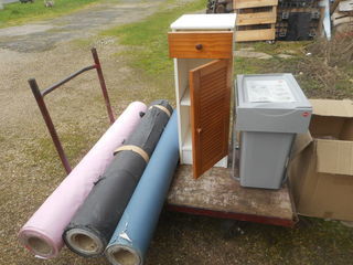 3 grand rouleu rose noir bleu le lot 100€ faire prix lot de 7 tiroir en bois massif pour rangement dresigne etc meuble de salle de bain 25€ un paquet de laine de roche 1 m 20 sur