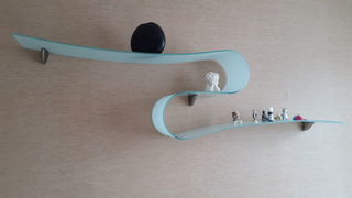 Très originale, cette étagère en verre satiné d'une épaisseur de 6 mm se pose facilement à l'aide des trois fixations en alu brossé. D'une longueur de 160 cm et d'une profondeur de