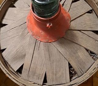 "dame jeanne" ancienne bonbonne a transport eau de vie des années 50/60 en très bon état , aucun choc sur le goulot ou est gravé AYENLENSE 1G-LX , la protection en bois et paillé