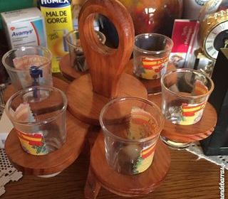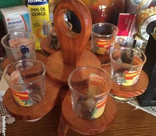 vends un presentoir en bois verni avec 6 verres sur le presentoir