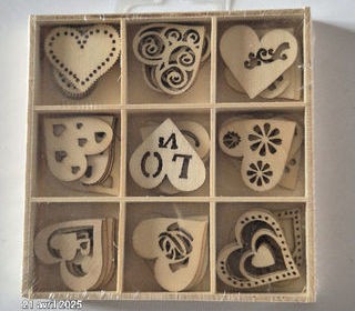 Coffret en bois de 45 sujets en bois sur le thème du coeur et de l'amour Cet assortiment de 45 sujets en bois brut vous sera idéal pour décorer vos créat