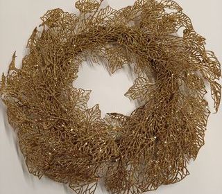 Décoration, couronne en or (imitation) pour la porte d'entrée ou un mur sur une véritable couronne en sarment et des f