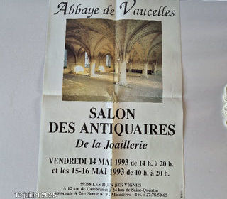 Affiche du salon des antiquaires de la joaillerie de l'Abbaye de Vaucelles, début 90 Belle affiche faite dans le début des années 90 Malheureusement p